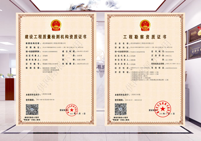 武漢固地鼎興工程技術有限公司成立于2014年11月,是國家高新技術企業(yè)、同時也是中國地質大學(武漢)工程學院產(chǎn)學研基地,是一家專門從事工程物探、水文勘察、工程檢測、監(jiān)測(自動化)、地震評價等業(yè)務的綜合性公司。目前公司持有湖北省市場監(jiān)督管理局頒發(fā)的CMA計量認證證書(地基基礎工程檢測、主體結構工程現(xiàn)場檢測、室內(nèi)環(huán)境檢測),湖北省住房和城鄉(xiāng)建設廳頒發(fā)的建設工程質量檢測機構證書,巖土工程勘察、設計、物探測試檢測監(jiān)測資質,以及勞務類(鑿井、工程鉆探)資質,同時也是地震安全性評價官方授權從業(yè)單位...